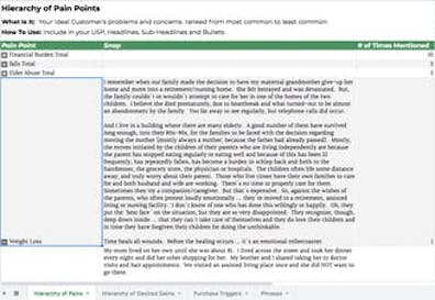 Have no interest or need to learn the ins and outs of voice of customer research? I'm including a one pager to take you through without the hassle of having to use google sheets or analyzing a large amount of data.
